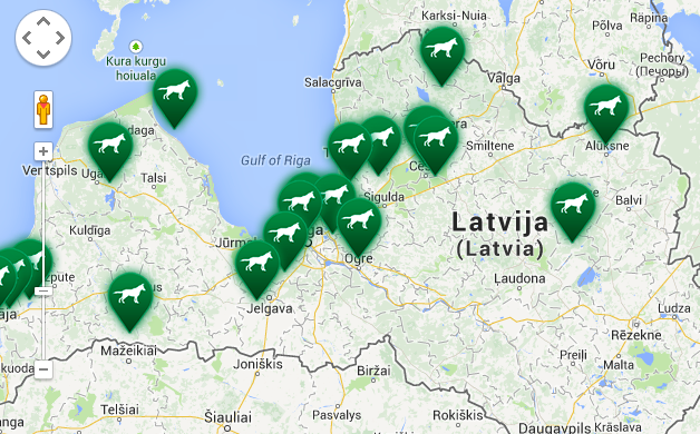 Papildus vēl kartē pievienojam informāciju par veterinārajām klīnikām, kas ir gatavas palīdzēt medībās cietušiem medību suņiem.